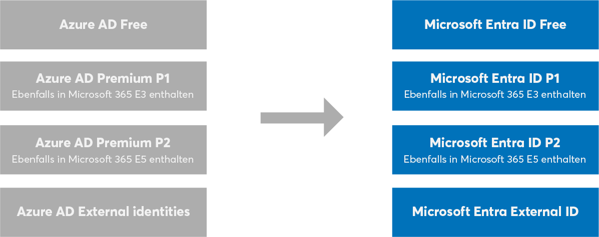 From October 1, 2023, the display names of the service plans will be renamed. The new names are Microsoft Entra ID Free, Microsoft Entra ID P1 and Microsoft Entra ID P2. Despite the new names, all functions contained in the current Azure AD plans will remain unchanged.