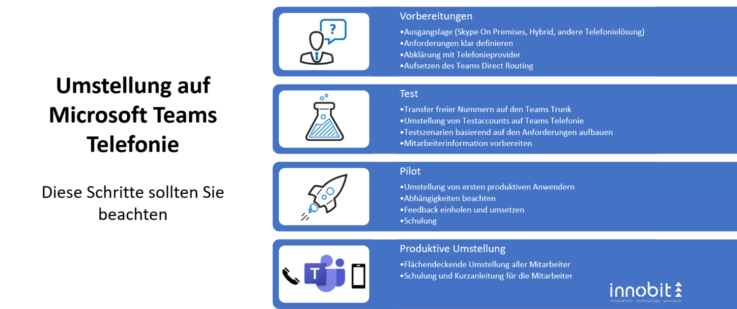 As an IT administrator, you can see that the effort involved in preparing and creating the necessary conditions for switching to telephony with Microsoft Teams is limited. However, you should have a strategy in place right from the start in order to creatively tackle details such as conference rooms and so on. In addition, there are of course the users who have to adapt to any new features.