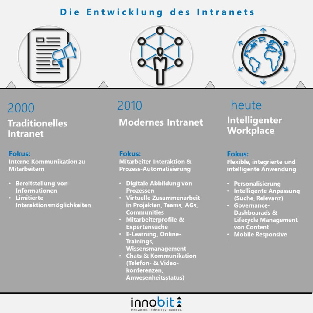 Like everything in technology, the intranet has undergone rapid development. Today, we speak of the digital workplace. But what is the difference between the classic intranet of 2000 and today's modern, digital workplace? We have visualized this transformation for you at a glance! And you? Where does your company stand in terms of digitalization? Tell me about it in the comments!