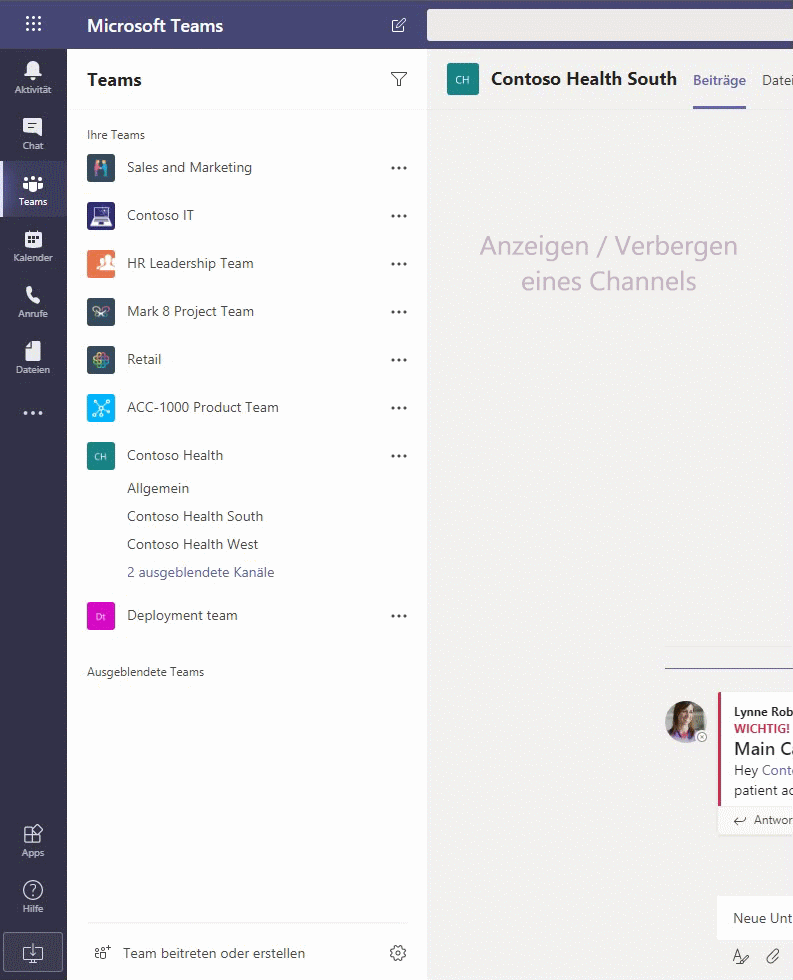 That's why I've gotten into the habit of going through my teams and channels once a month. I display the ones that are currently relevant to me and hide all the others. This is a big advantage for me as I am not overwhelmed with irrelevant notifications. Of course, I still have access to all channels with just a few clicks, they are just no longer displayed directly in the menu.