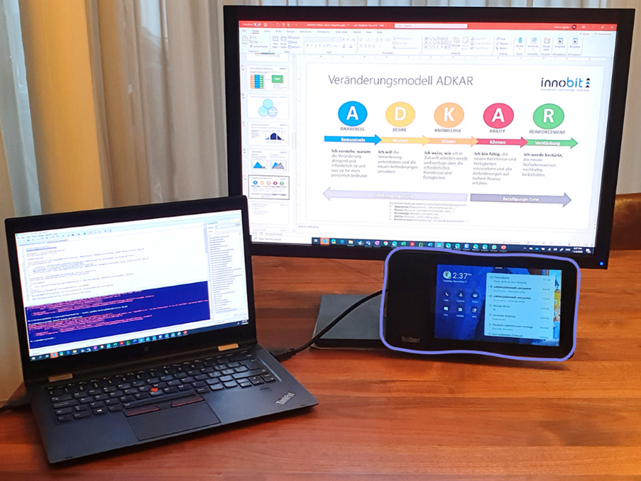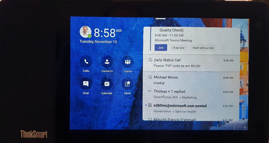 Thanks to the Teams display, I have been able to split up my communication needs successfully for several weeks now from my overloaded laptop.p and have been able to communicate via my attentive and smart helper.