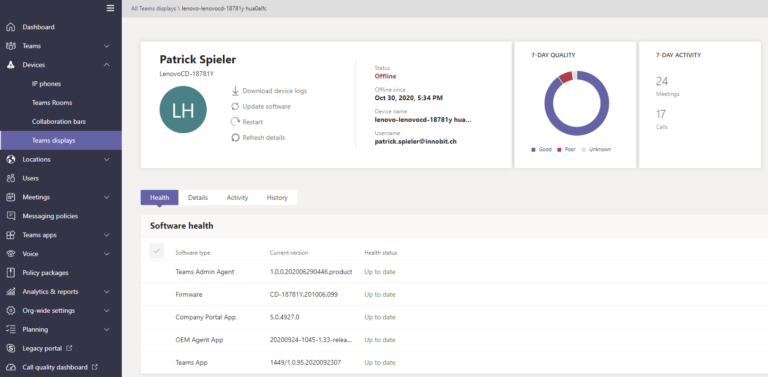 Enterprise ready: The management of the team displays is done centrally via the Microsoft Teams Admin. Updates are controlled via policies, the devices are secured (among others pin lock) and updated. Authentication takes place as usual and secured via Azure Active Directory credentials.